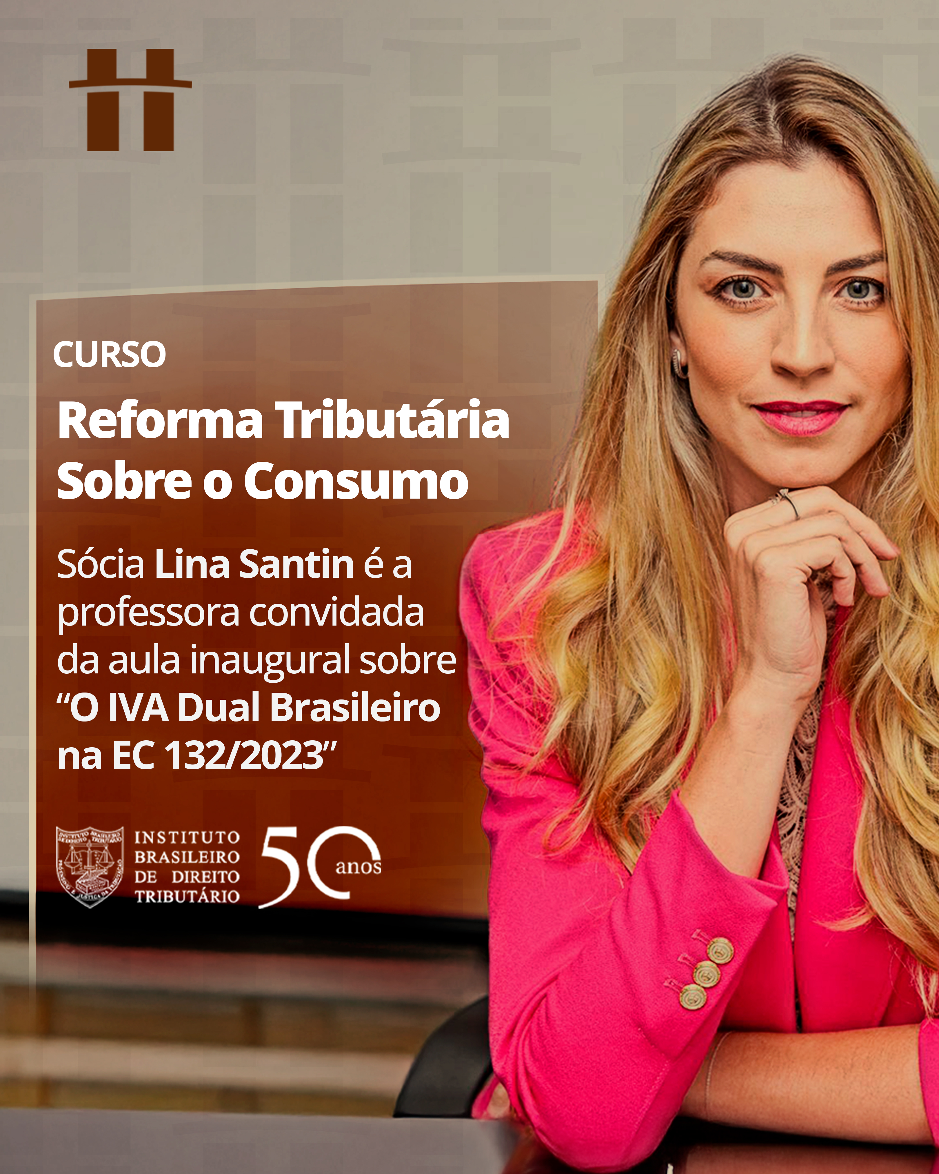 Acompanhe hoje, a partir das 19h, a aula inaugural do curso Reforma Tributária Sobre o Consumo, do IBDT, com a presença da sócia Lina Santin, como professora convidada.